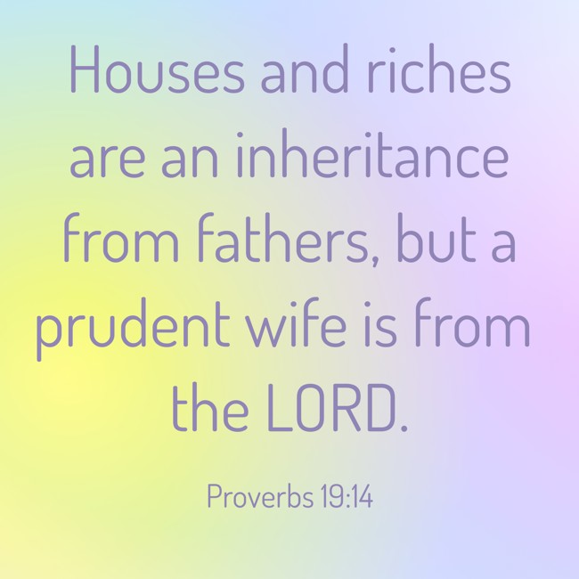 Houses and riches are an inheritance from fathers, but a prudent wife is from the LORD.