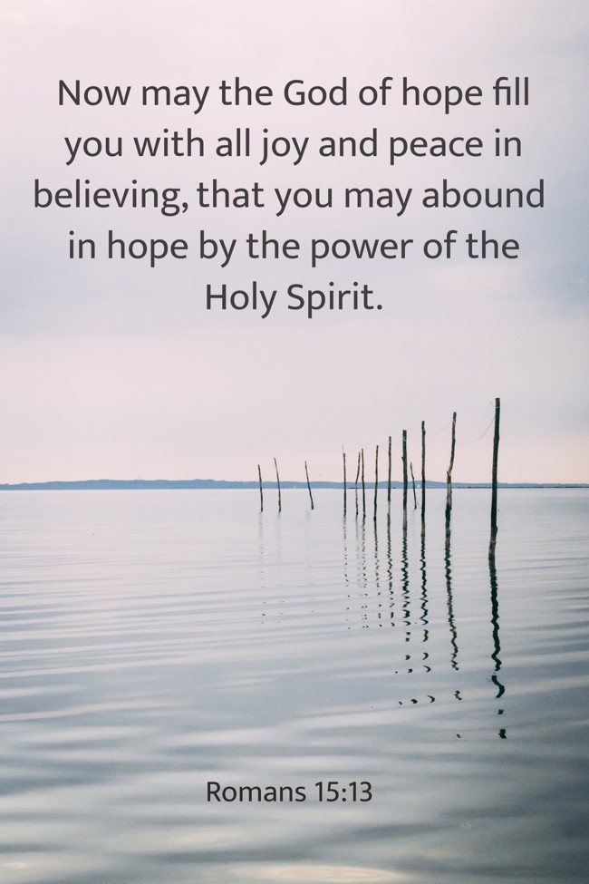 Now may the God of hope fill you with all joy and peace in believing, that you may abound in hope by the power of the Holy Spirit.