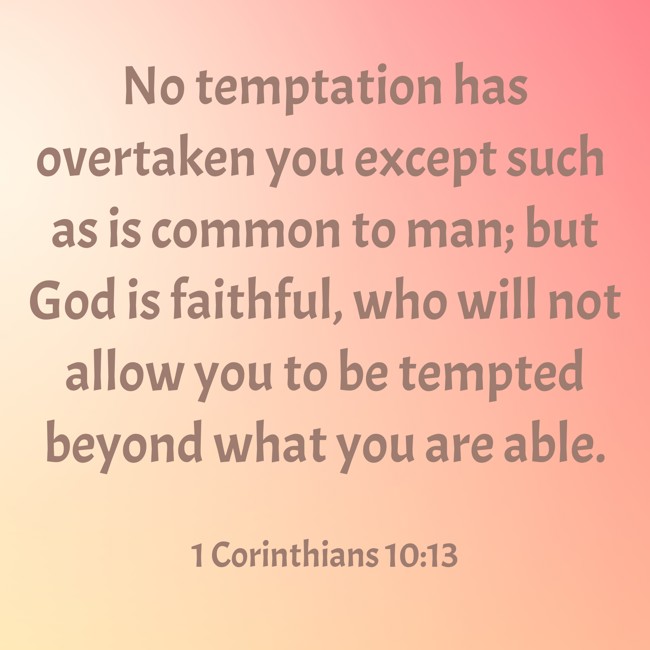 No temptation has overtaken you except such as is common to man; but God is faithful, who will not allow you to be tempted beyond what you are able.