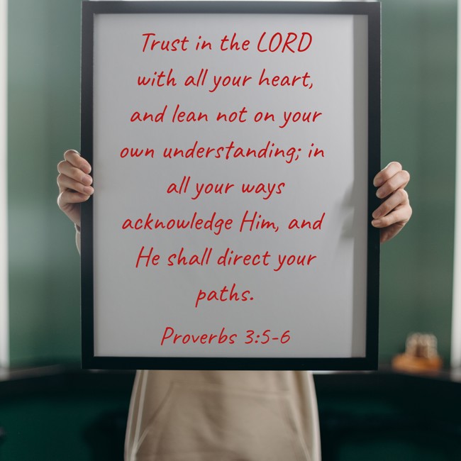 Trust in the LORD with all your heart, and lean not on your own understanding; in all your ways acknowledge Him, and He shall direct your paths.