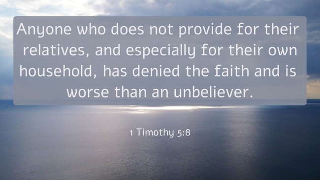 Anyone who does not provide for their relatives, and especially for their own household, has denied the faith and is worse than an unbeliever.